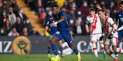 So gewinnt Real Madrid zwar keinen Schönheitspreis, aber wohl die Meisterschaft! Bei Rayo Vallecano haben sich die Blancos spät zu einem 1:0 gemüht und so ihre Tabellenführung in LaLiga gefestigt. Coach Carlo Ancelotti zeigte sich auf der Pressekonferenz nach Abpfiff „sehr zufrieden“ ob des Engagements seines gesamten Teams und meinte, dieses sei „auf dem richtigen Weg“. Ferner sprach der Italiener über den zuletzt herausragenden Thibaut Courtois und erklärte das Fehlen seines ukrainischen Ersatzmannes Andriy Lunin im Spieltagsaufgebot.