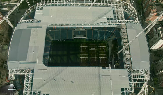 Dass dieser Schritt nun erfolgt, liegt daran, dass wiederum erst kürzlich größere Teile geliefert wurden, die sich direkt unterhalb des Unterrangs befinden. Sie spielen in Zukunft eine wichtige Rolle beim Ein- und Ausfahren des Spielfelds. Der Rasen kann bald bekanntlich in mehreren Stücken in ein unterirdisches Lager verfrachten werden, damit abgesehen von Fußballspielen auch andere Veranstaltungen stattfinden können.