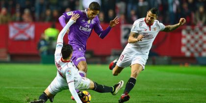 Im Vergleich zum Schlagabtausch vor drei Tagen begann die Partie im Pizjuán diesmal erwartungsgemäß verhalten. Abtasten war zunächst angesagt, beiden Teams war anzumerken, dass Fehler um jeden Preis vermieden werden sollten. Für den ersten Aufreger sorgte nach guten zehn Minuten Modrić, der sich auf rechts clever gegen Rami durchsetzte, vom Franzosen im letzten Moment allerdings doch noch entscheidend gestört werden konnte, sodass die Flanke für den blank stehenden Ronaldo doch etwas zu hoch geriet. Ansonsten spielte sich das Geschehen weitestgehend zwischen den Strafräumen ab, wobei Sevilla optisch sogar ein wenig überlegen war. Bis auf eine Halbchance von N’Zonzi nach einer Ecke, als sich Navas ein wenig verschätzte, und einem letztlich harmlosen Distanzschuss von Nasri sprang in der ersten halben Stunde allerdings wenig Gefährliches auf Seiten der Sevillanos heraus.