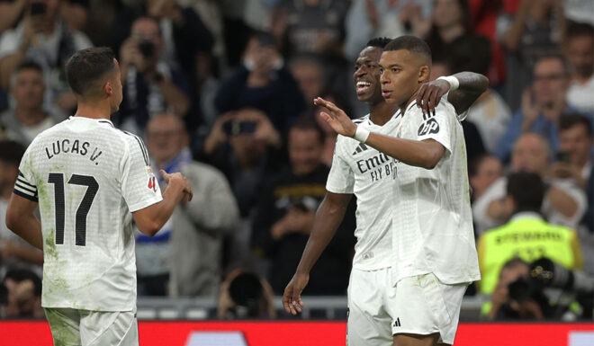 Im 300. Pflichtspiel von Carlo Ancelotti als Real-Trainer brachte Lucas Vázquez die Hausherren schon nach 54 Sekunden auf Kurs, kurz vor der Pause erhöhte Kylian Mbappé (40.). Es waren erst die Tore zwei und drei, die das weiße Ballett diese Saison in einer ersten Halbzeit erzielte. Nach dem Wiederanpfiff wurde es durch Rodrygo Goes (48.) deutlicher. In der Schlussphase verhielt sich Real zu schläfrig, durch einen Doppelschlag binnen einer Minute und 48 Sekunden wurde es noch einmal unnötig spannend.